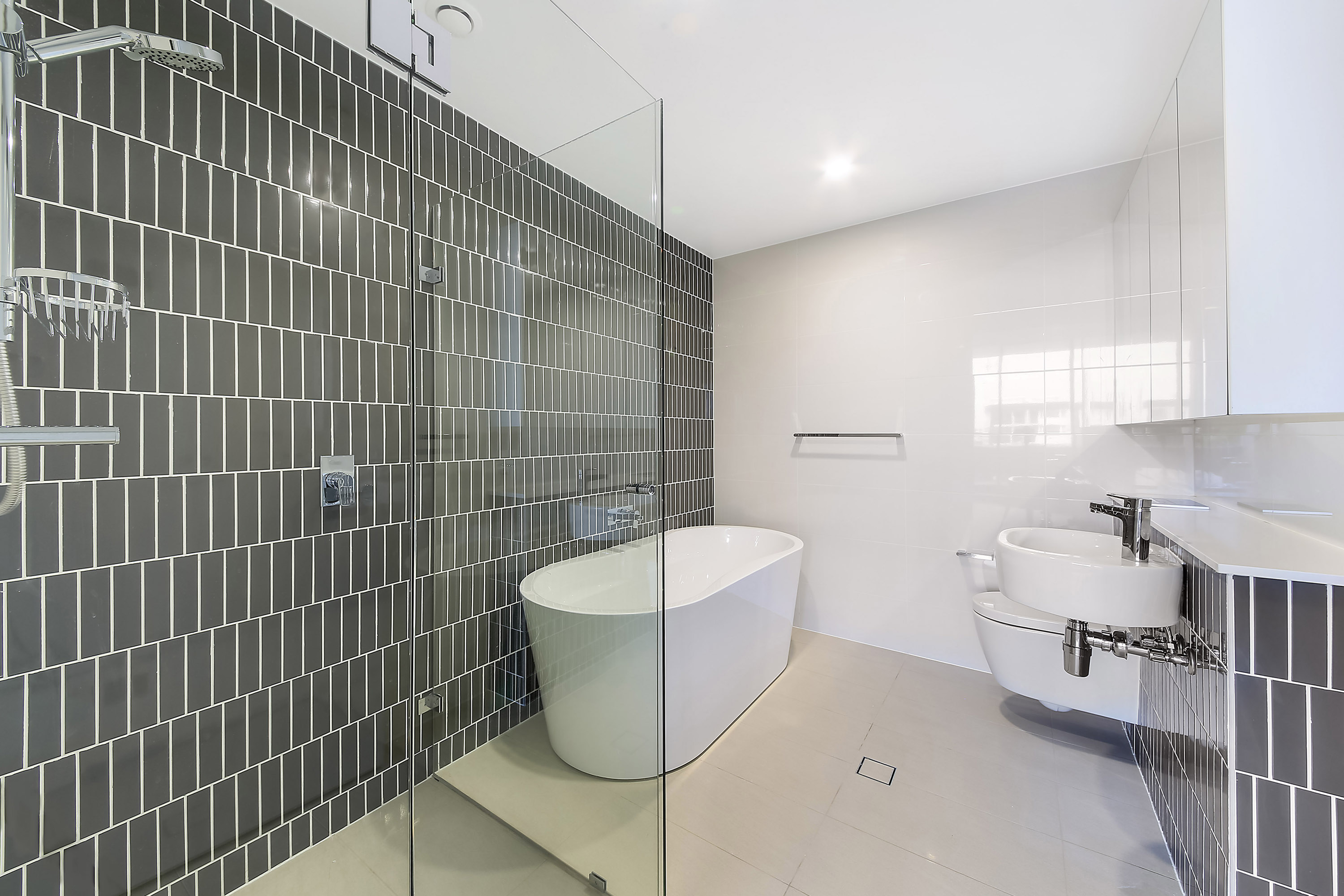 -Stylish bathrooms with bath tub, designed fittings & frameless glass shower