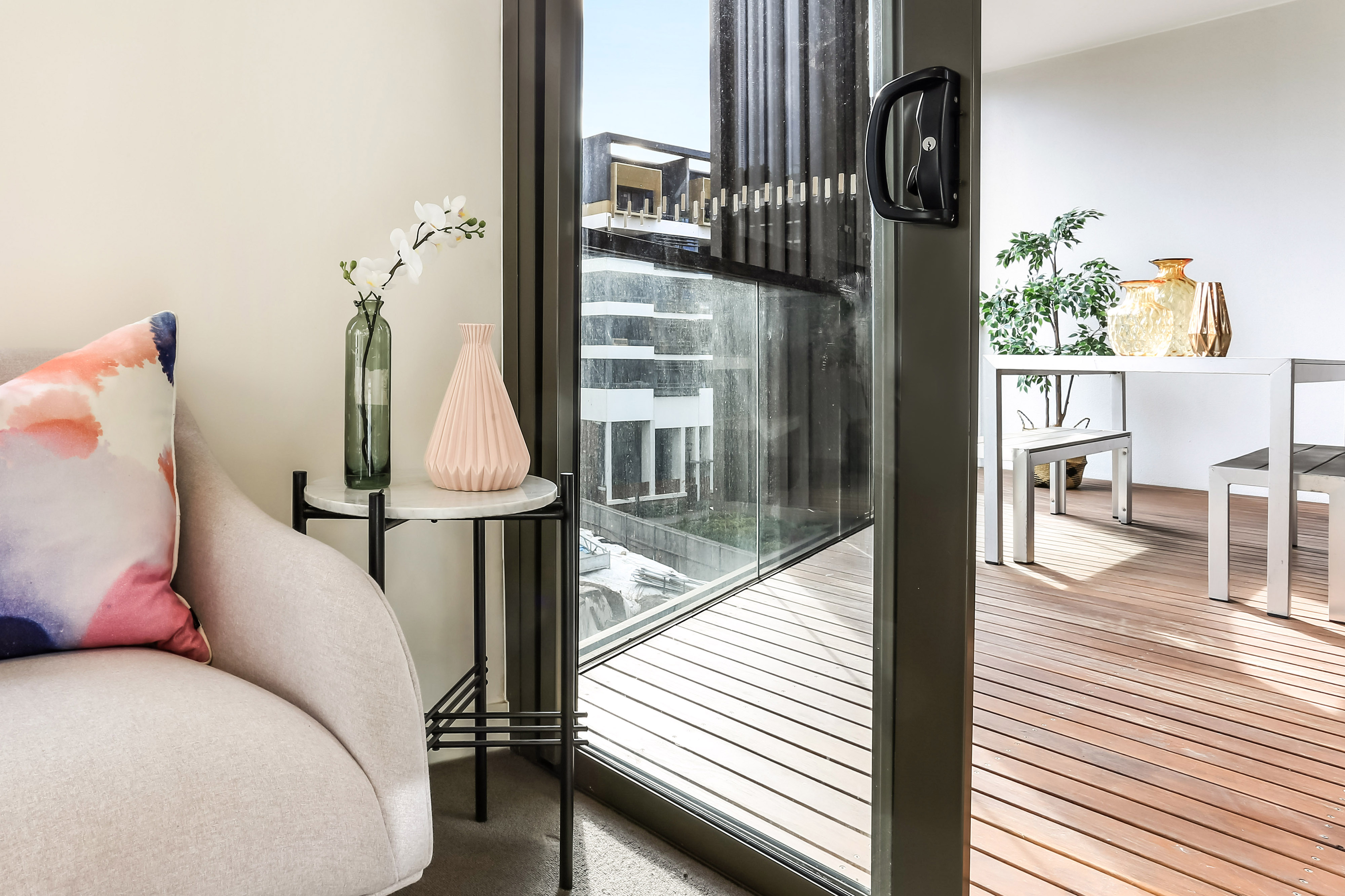 - SPACIOUS living area with timber flooring throughout & floor-to ceiling windows