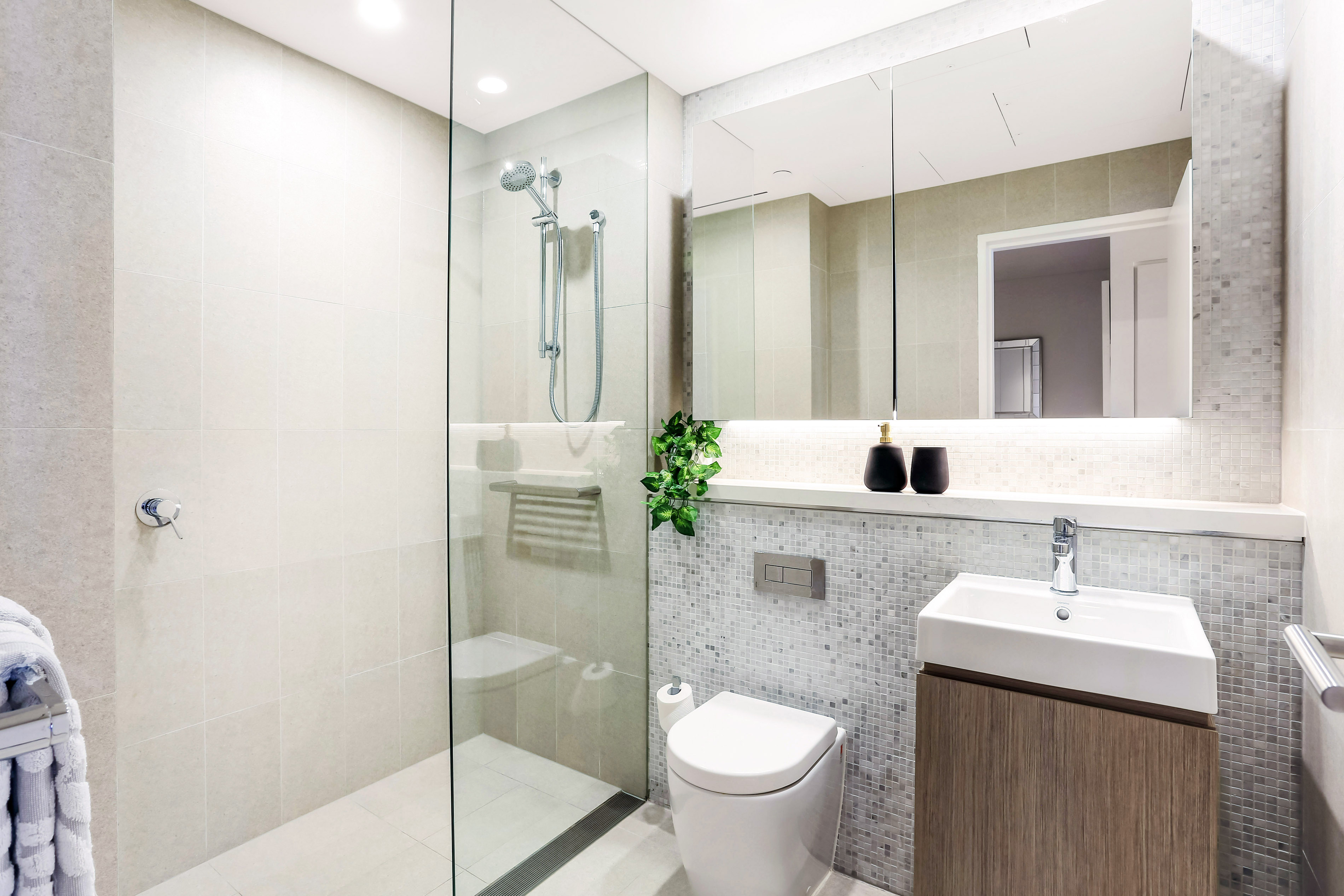 - Designer bathroom w seamless shower & STYLISH fittings
