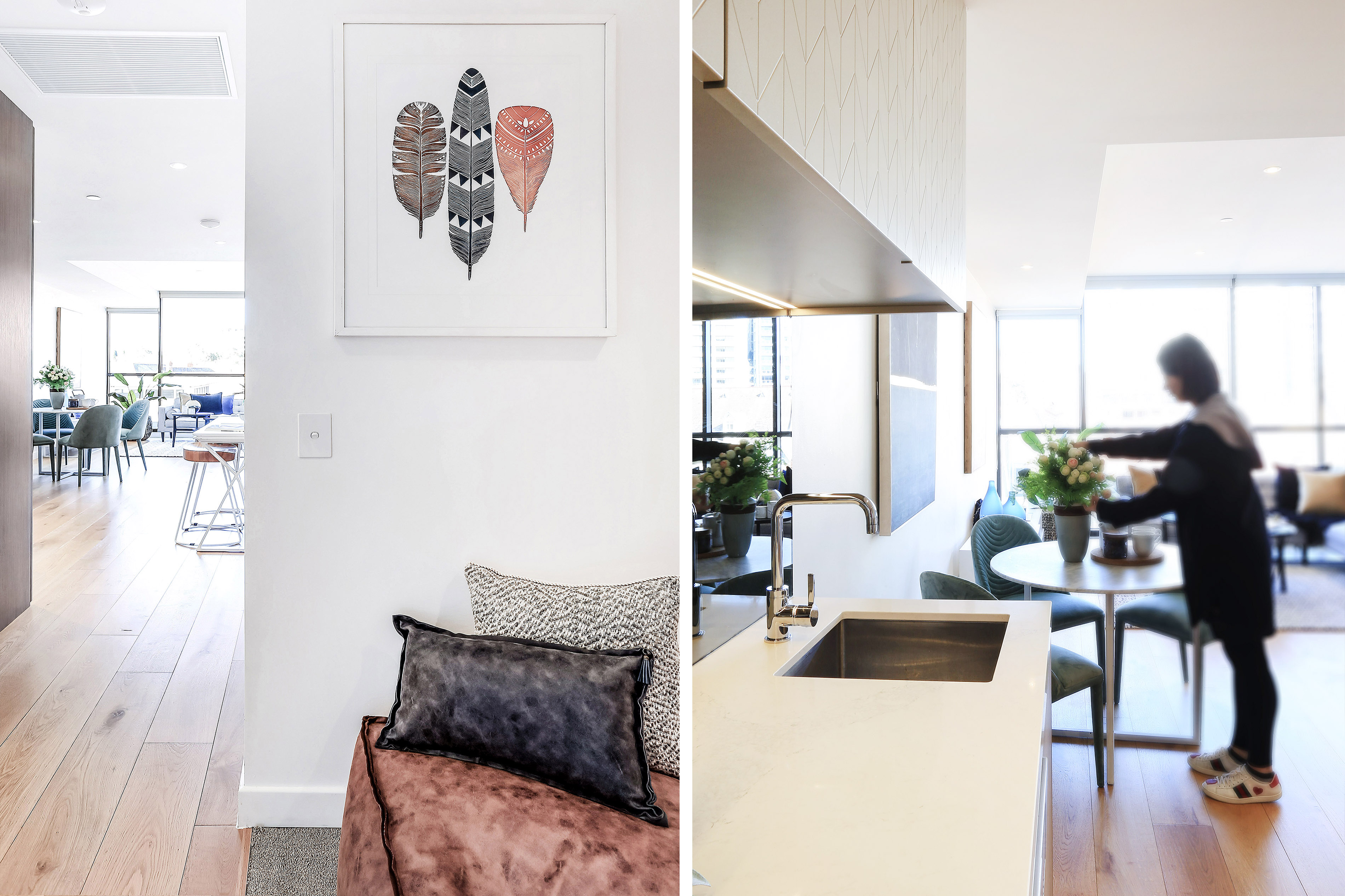 - Open plan living w floor to ceiling windows & TIMBER flooring throughout